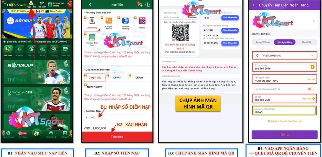 Hãy thực hiện đúng 4 bước trong hướng dẫn trên để nạp tiền thành công ngay lần đầu tiên!